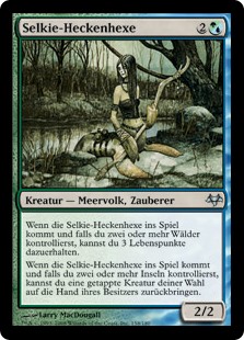 | Rules | When Selkie Hedge-Mage enters the battlefield, if you control two or more Forests, you may gain 3 life. When Selkie Hedge-Mage enters the battlefield, if you control two or more Islands, you may return target tapped creature to its owner's hand. |