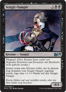 | Rules | Flying (This creature can't be blocked except by creatures with flying or reach.) Whenever a creature dealt damage by Sengir Vampire this turn dies, put a +1/+1 counter on Sengir Vampire. |