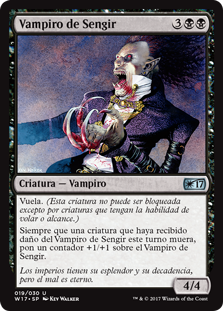 | Rules | Flying (This creature can't be blocked except by creatures with flying or reach.) Whenever a creature dealt damage by Sengir Vampire this turn dies, put a +1/+1 counter on Sengir Vampire. |