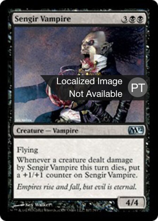 | Rules | Flying (This creature can't be blocked except by creatures with flying or reach.) Whenever a creature dealt damage by Sengir Vampire this turn dies, put a +1/+1 counter on Sengir Vampire. |