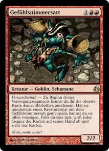 | Rules | Kinship — At the beginning of your upkeep, you may look at the top card of your library. If it shares a creature type with Sensation Gorger, you may reveal it. If you do, each player discards their hand, then draws four cards. |