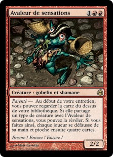 | Rules | Kinship — At the beginning of your upkeep, you may look at the top card of your library. If it shares a creature type with Sensation Gorger, you may reveal it. If you do, each player discards their hand, then draws four cards. |