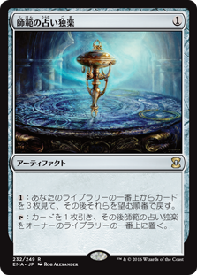 | Rules | : Look at the top three cards of your library, then put them back in any order. : Draw a card, then put Sensei's Divining Top on top of its owner's library. |