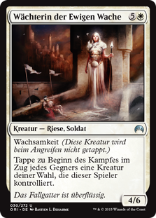 | Rules | Vigilance (Attacking doesn't cause this creature to tap.) At the beginning of combat on each opponent's turn, tap target creature that player controls. |