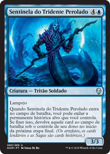 When Sentinel of the Pearl Trident enters the battlefield, you may exile target historic permanent you control. If you do, return that card to the battlefield under its owner's control at the beginning of the next end step. (Artifacts, legendaries, and Sagas are historic.)