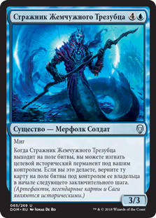 | Rules | Flash When Sentinel of the Pearl Trident enters the battlefield, you may exile target historic permanent you control. If you do, return that card to the battlefield under its owner's control at the beginning of the next end step. (Artifacts, legendaries, and Sagas are historic.) |