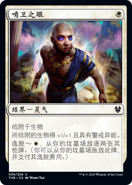 | Rules | Enchant creature Enchanted creature gets +1/+1 and has vigilance. Escape—, Exile two other cards from your graveyard. (You may cast this card from your graveyard for its escape cost.) |
