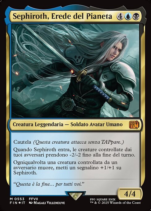 | Rules | Vigilance (Attacking doesn't cause this creature to tap.) When Sephiroth enters, creatures your opponents control get -2/-2 until end of turn. Whenever a creature an opponent controls dies, put a +1/+1 counter on Sephiroth. |