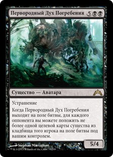 | Rules | Intimidate (This creature can't be blocked except by artifact creatures and/or creatures that share a color with it.) When Sepulchral Primordial enters the battlefield, for each opponent, you may put up to one target creature card from that player's graveyard onto the battlefield under your control. |