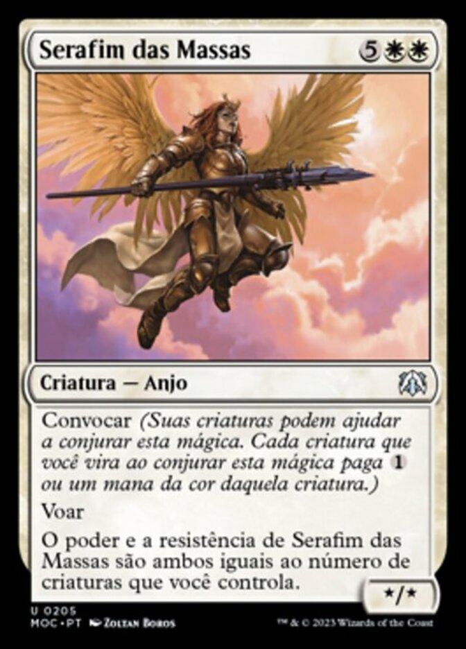 | Rules | Convoke (Your creatures can help cast this spell. Each creature you tap while casting this spell pays for or one mana of that creature's color.) Flying Seraph of the Masses's power and toughness are each equal to the number of creatures you control. |