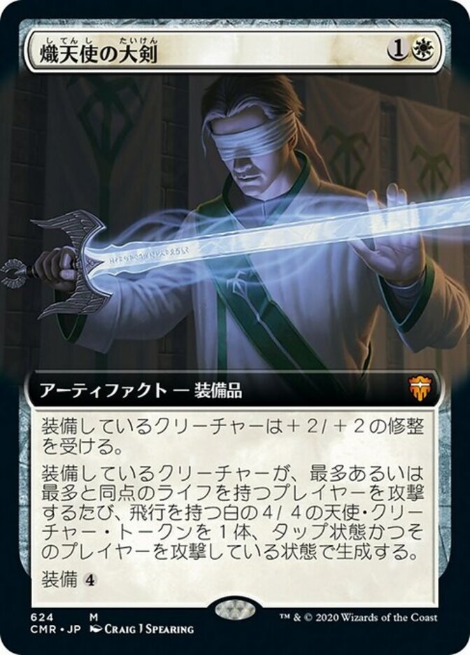 | Rules | Equipped creature gets +2/+2. Whenever equipped creature attacks the player with the most life or tied for most life, create a 4/4 white Angel creature token with flying that's tapped and attacking that player. Equip |