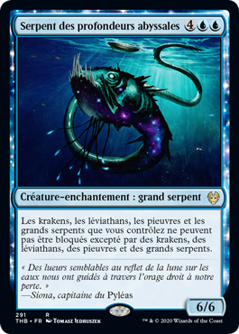 | Rules | Krakens, Leviathans, Octopuses, and Serpents you control can't be blocked except by Krakens, Leviathans, Octopuses, and Serpents. |
