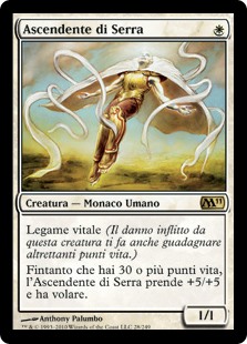 | Rules | Lifelink (Damage dealt by this creature also causes you to gain that much life.) As long as you have 30 or more life, Serra Ascendant gets +5/+5 and has flying. |