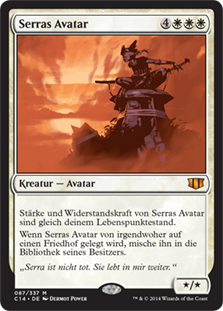 | Rules | Serra Avatar's power and toughness are each equal to your life total. When Serra Avatar is put into a graveyard from anywhere, shuffle it into its owner's library. |