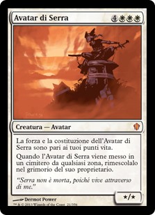 | Rules | Serra Avatar's power and toughness are each equal to your life total. When Serra Avatar is put into a graveyard from anywhere, shuffle it into its owner's library. |