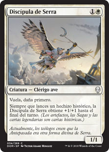 | Rules | Flying, first strike Whenever you cast a historic spell, Serra Disciple gets +1/+1 until end of turn. (Artifacts, legendaries, and Sagas are historic.) |