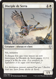 | Rules | Flying, first strike Whenever you cast a historic spell, Serra Disciple gets +1/+1 until end of turn. (Artifacts, legendaries, and Sagas are historic.) |