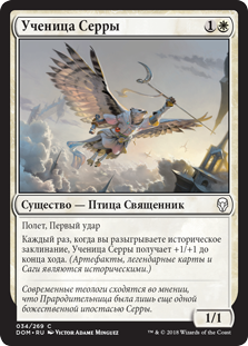 | Rules | Flying, first strike Whenever you cast a historic spell, Serra Disciple gets +1/+1 until end of turn. (Artifacts, legendaries, and Sagas are historic.) |