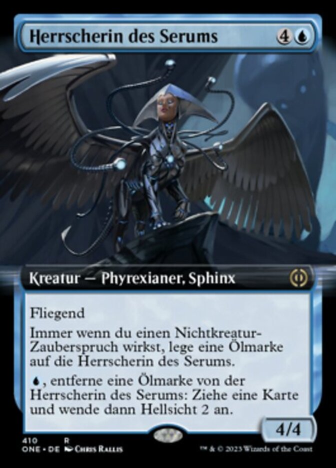 | Rules | Flying Whenever you cast a noncreature spell, put an oil counter on Serum Sovereign. , Remove an oil counter from Serum Sovereign: Draw a card, then scry 2. |