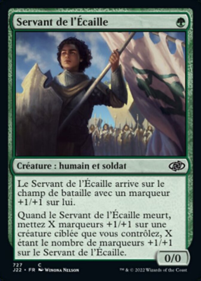 | Rules | Servant of the Scale enters the battlefield with a +1/+1 counter on it. When Servant of the Scale dies, put X +1/+1 counters on target creature you control, where X is the number of +1/+1 counters on Servant of the Scale. |