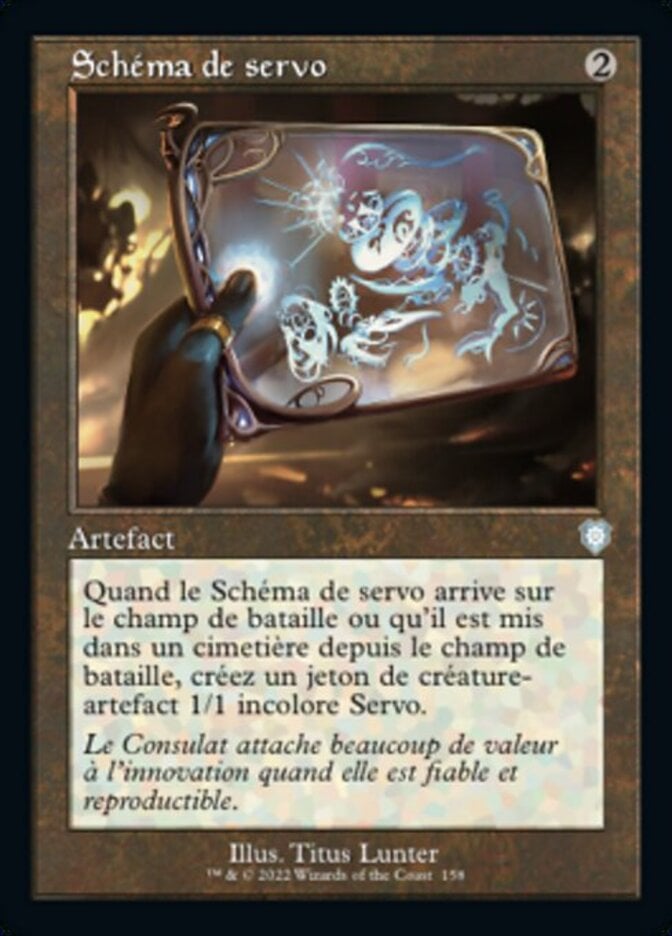 Rules When Servo Schematic enters the battlefield or is put into a graveyard from the battlefield, create a 1/1 colorless Servo artifact creature token.