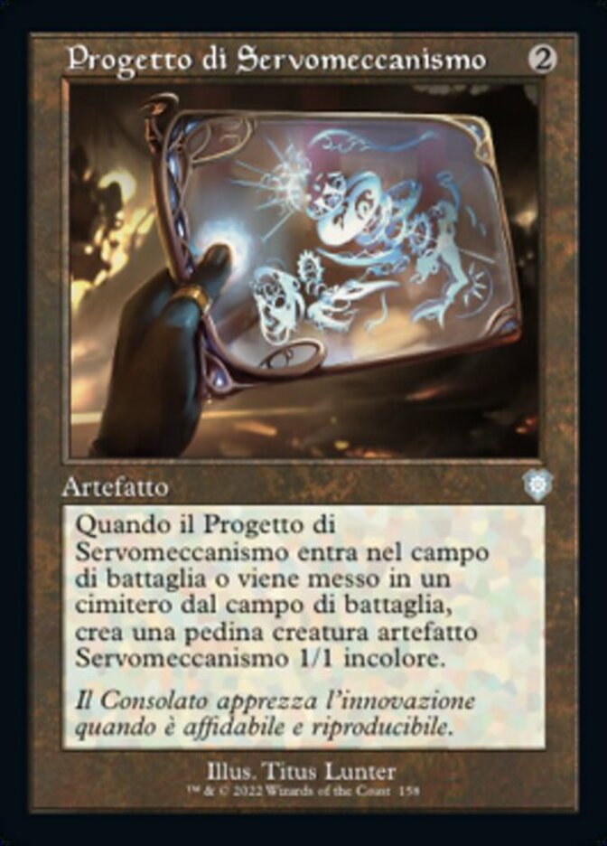 | Rules | When Servo Schematic enters the battlefield or is put into a graveyard from the battlefield, create a 1/1 colorless Servo artifact creature token. |
