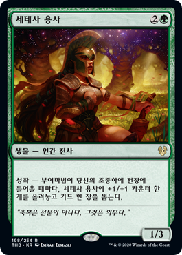 | Rules | Constellation — Whenever an enchantment enters the battlefield under your control, put a +1/+1 counter on Setessan Champion and draw a card. |