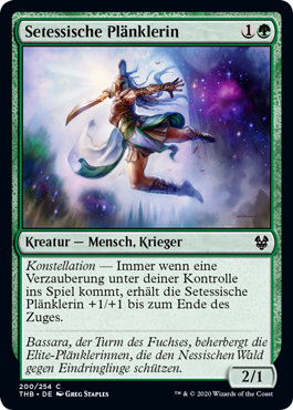 | Rules | Constellation — Whenever an enchantment enters the battlefield under your control, Setessan Skirmisher gets +1/+1 until end of turn. |