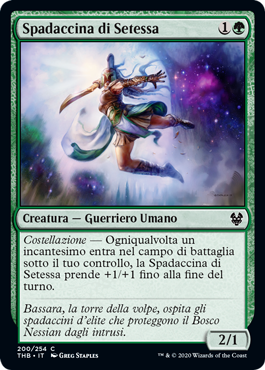 | Rules | Constellation — Whenever an enchantment enters the battlefield under your control, Setessan Skirmisher gets +1/+1 until end of turn. |