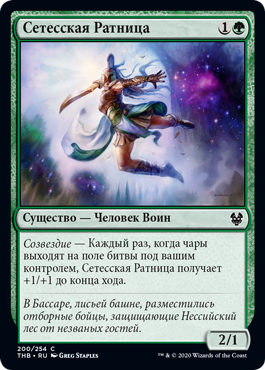 | Rules | Constellation — Whenever an enchantment enters the battlefield under your control, Setessan Skirmisher gets +1/+1 until end of turn. |