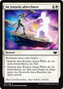 | Rules | Choose one or both — • Exile target creature you don't control. • Exile target creature you control, then return it to the battlefield under its owner's control. |