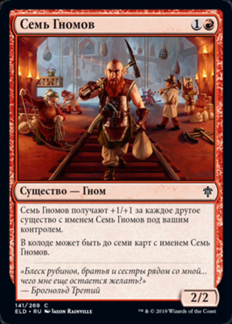 | Rules | Seven Dwarves gets +1/+1 for each other creature named Seven Dwarves you control. A deck can have up to seven cards named Seven Dwarves. |