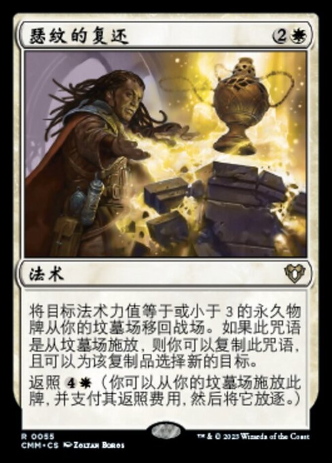 | Rules | Return target permanent card with mana value 3 or less from your graveyard to the battlefield. If this spell was cast from a graveyard, you may copy this spell and may choose a new target for the copy. Flashback (You may cast this card from your graveyard for its flashback cost. Then exile it.) |