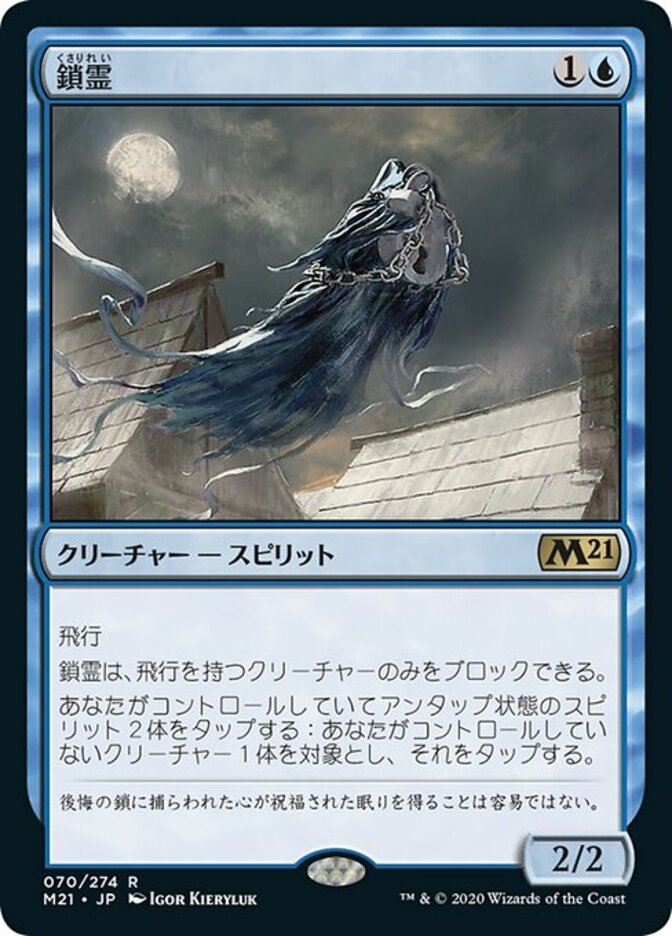 | Rules | Flying Shacklegeist can block only creatures with flying. Tap two untapped Spirits you control: Tap target creature you don't control. |