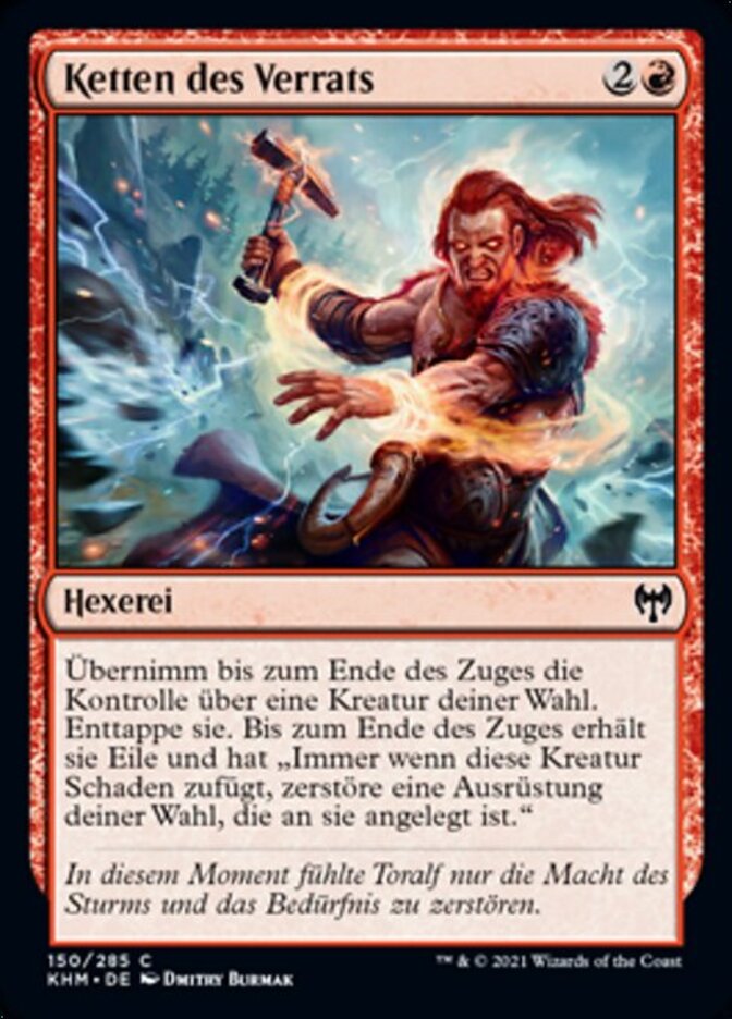 | Rules | Gain control of target creature until end of turn. Untap that creature. Until end of turn, it gains haste and "Whenever this creature deals damage, destroy target Equipment attached to it." |
