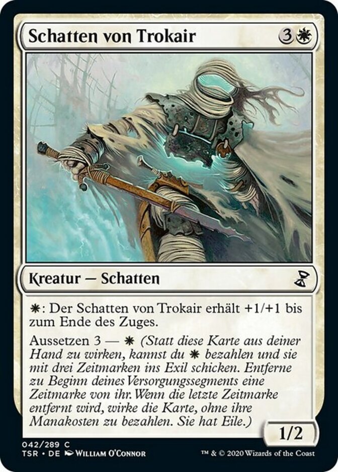| Rules | : Shade of Trokair gets +1/+1 until end of turn. Suspend 3— (Rather than cast this card from your hand, you may pay and exile it with three time counters on it. At the beginning of your upkeep, remove a time counter. When the last is removed, cast it without paying its mana cost. It has haste.) |