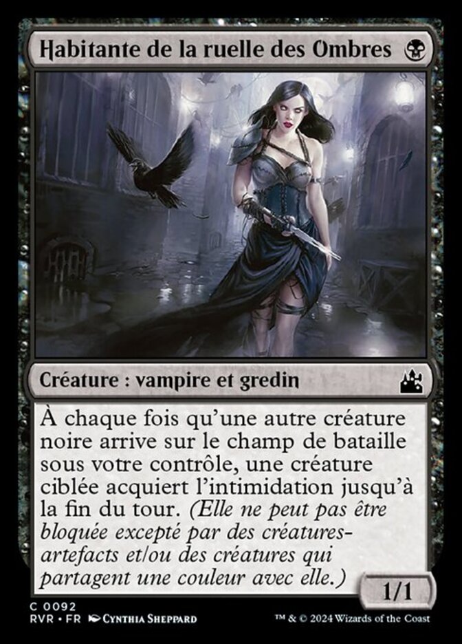 | Rules | Whenever another black creature enters the battlefield under your control, target creature gains intimidate until end of turn. (It can't be blocked except by artifact creatures and/or creatures that share a color with it.) |