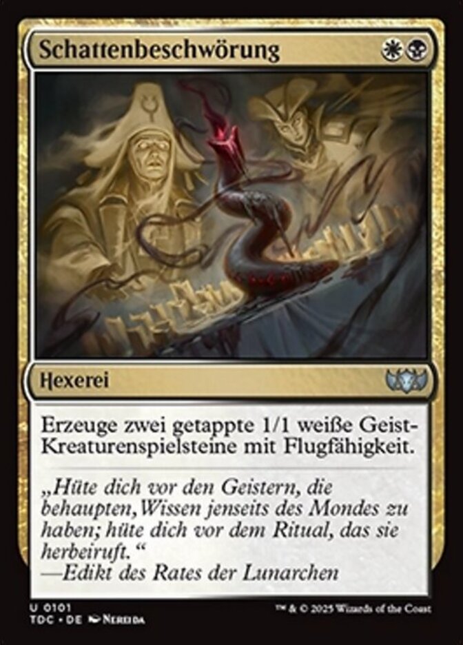 | Rules | Create two tapped 1/1 white Spirit creature tokens with flying. |
