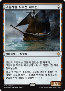 | Rules | Whenever a creature you control explores, put a +1/+1 counter on Shadowed Caravel. Crew 2 (Tap any number of creatures you control with total power 2 or more: This Vehicle becomes an artifact creature until end of turn.) |