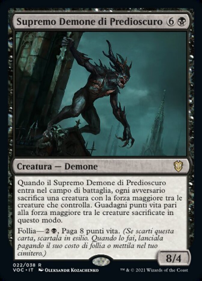 | Rules | When Shadowgrange Archfiend enters the battlefield, each opponent sacrifices a creature with the greatest power among creatures they control. You gain life equal to the greatest power among creatures sacrificed this way. Madness—, Pay 8 life. (If you discard this card, discard it into exile. When you do, cast it for its madness cost or put it into your graveyard.) |