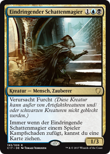 | Rules | Fear (This creature can't be blocked except by artifact creatures and/or black creatures.) Whenever Shadowmage Infiltrator deals combat damage to a player, you may draw a card. |