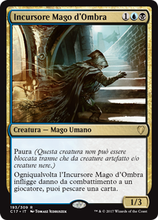 | Rules | Fear (This creature can't be blocked except by artifact creatures and/or black creatures.) Whenever Shadowmage Infiltrator deals combat damage to a player, you may draw a card. |