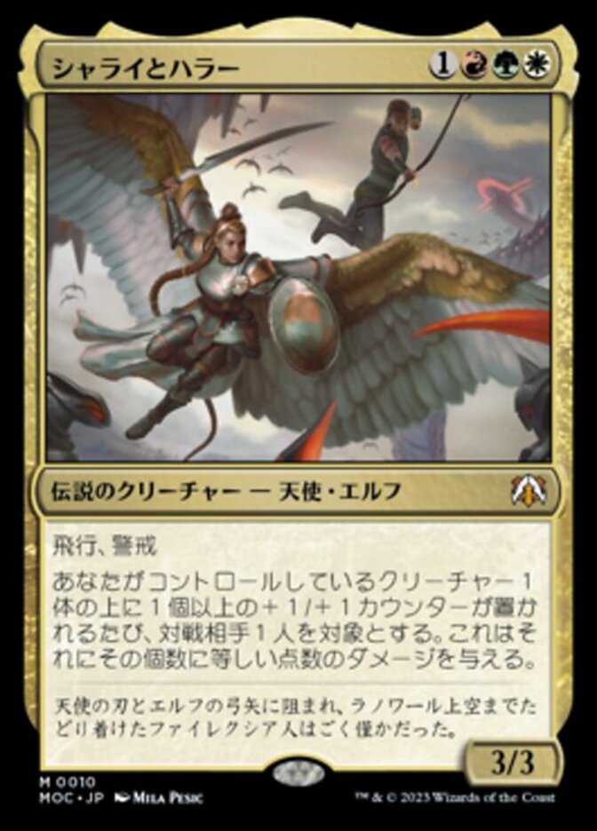 | Rules | Flying, vigilance Whenever one or more +1/+1 counters are put on a creature you control, Shalai and Hallar deals that much damage to target opponent. |