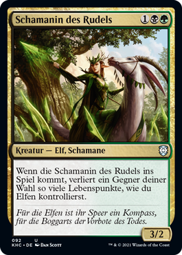 | Rules | When Shaman of the Pack enters the battlefield, target opponent loses life equal to the number of Elves you control. |