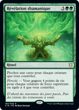 | Rules | Draw a card for each creature you control. Ferocious — You gain 4 life for each creature you control with power 4 or greater. |