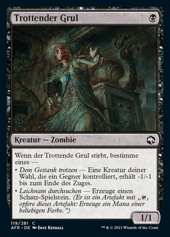 | Rules | When Shambling Ghast dies, choose one — • Brave the Stench — Target creature an opponent controls gets -1/-1 until end of turn. • Search the Body — Create a Treasure token. (It's an artifact with ", Sacrifice this artifact: Add one mana of any color.") |