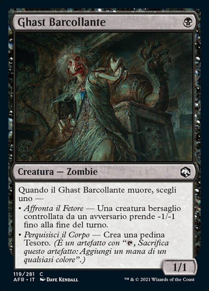 | Rules | When Shambling Ghast dies, choose one — • Brave the Stench — Target creature an opponent controls gets -1/-1 until end of turn. • Search the Body — Create a Treasure token. (It's an artifact with ", Sacrifice this artifact: Add one mana of any color.") |