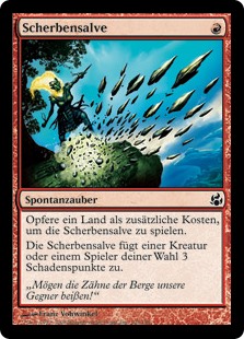 | Rules | As an additional cost to cast this spell, sacrifice a land. Shard Volley deals 3 damage to any target. |