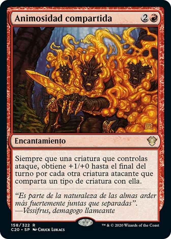 | Rules | Whenever a creature you control attacks, it gets +1/+0 until end of turn for each other attacking creature that shares a creature type with it. |