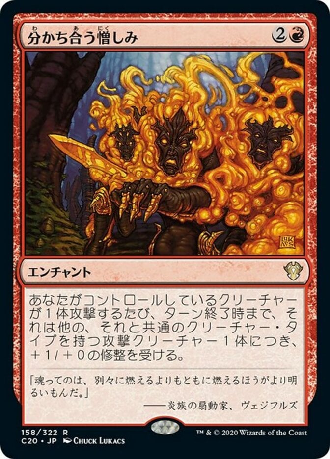 | Rules | Whenever a creature you control attacks, it gets +1/+0 until end of turn for each other attacking creature that shares a creature type with it. |